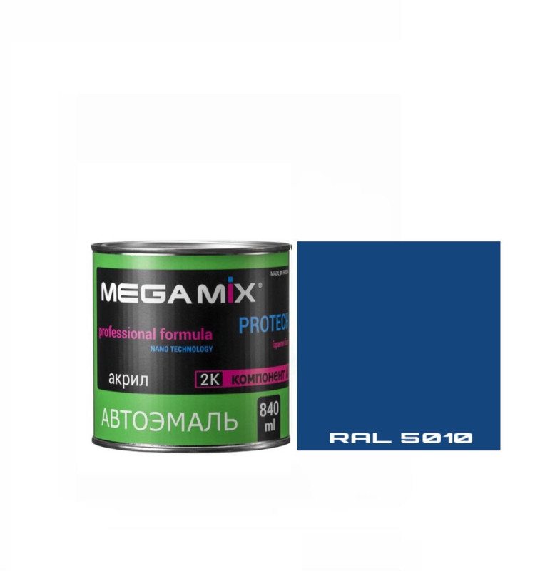 Купить Акриловая эмаль 2К 4:1 MegaMix б/ж 840мл Синий RAL 5010 вы можете в компании chelnykraska, оформив заказ в интернет магазине, или